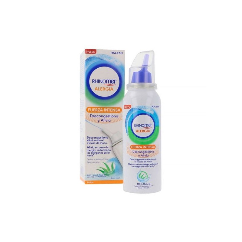 Spray 100% de agua de mar natural, isotónica estéril con aloe vera para la limpieza nasal diaria, está indicado en adultos que padecen alergias y/o sequedad nasal. El chorro para limpiar las fosas nasales es de fuerza intensa y nos ayuda a reducir la congestión e irritación producida por la alergia.
