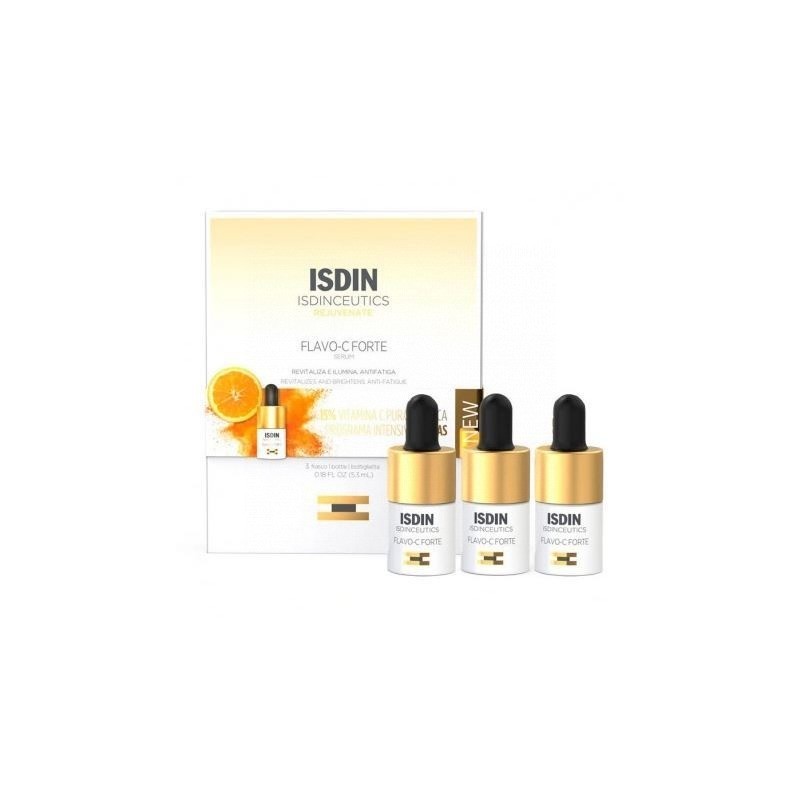 Flavo-C Forte es un potente sérum facial intensivo con un 15% de vitamina C pura y fresca que revitaliza, ilumina y ayuda a disminuir los signos de fatiga de la piel. Además, aumenta la producción de colágeno, aporta firmeza y ayuda a reducir las arrugas en solo 10 días, protegiendo la piel del estrés oxidativo y la polución. Su innovador formato con vitamina C en polvo mantiene la vitamina C fresca y estable hasta el primer momento de uso, cuando se mezcla con una solución líquida con ingredientes antioxidantes, hidratantes y antipolución.